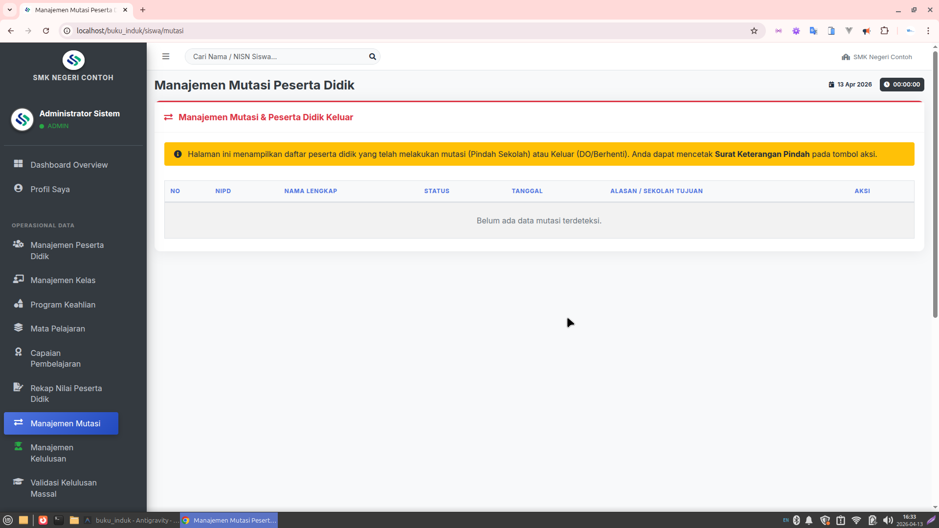 Surat Keterangan Pindah: Pembuatan dokumen mutasi otomatis yang profesional.