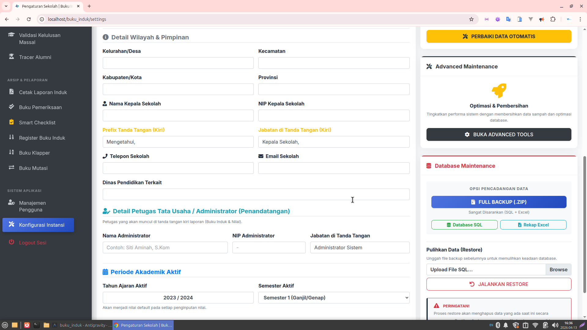 Maintenance Database: Sistem backup satu-klik (.SQL/.XLSX) dan fitur restore untuk keamanan data tingkat tinggi.